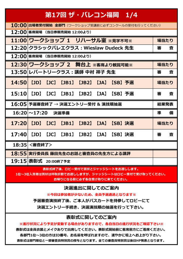 ・表彰式は出場者全員、衣装・メイクありで出席してください。上位入賞者だけでなく決選で踊られた方全員舞台に上がります。